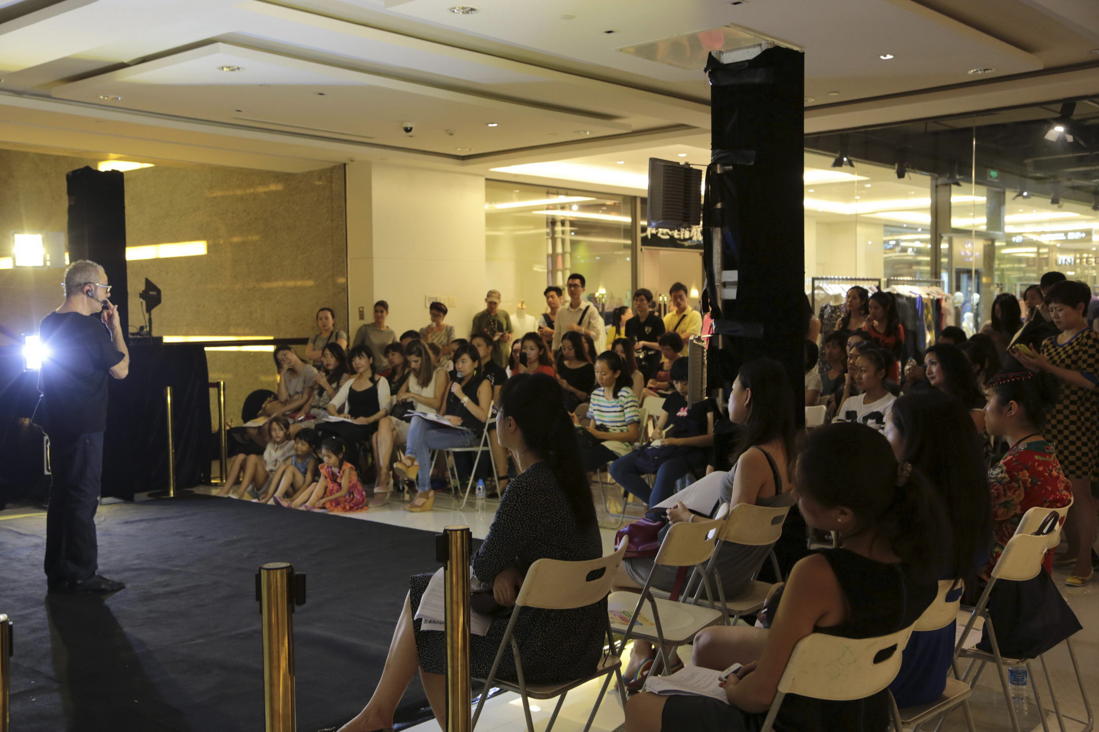 Singular mall with Chinese fashion designers "boutiques". Glamourous and refined appearance. Our audience know what they are talking about. The concept of modernity is not surprising. Very attentive audience.