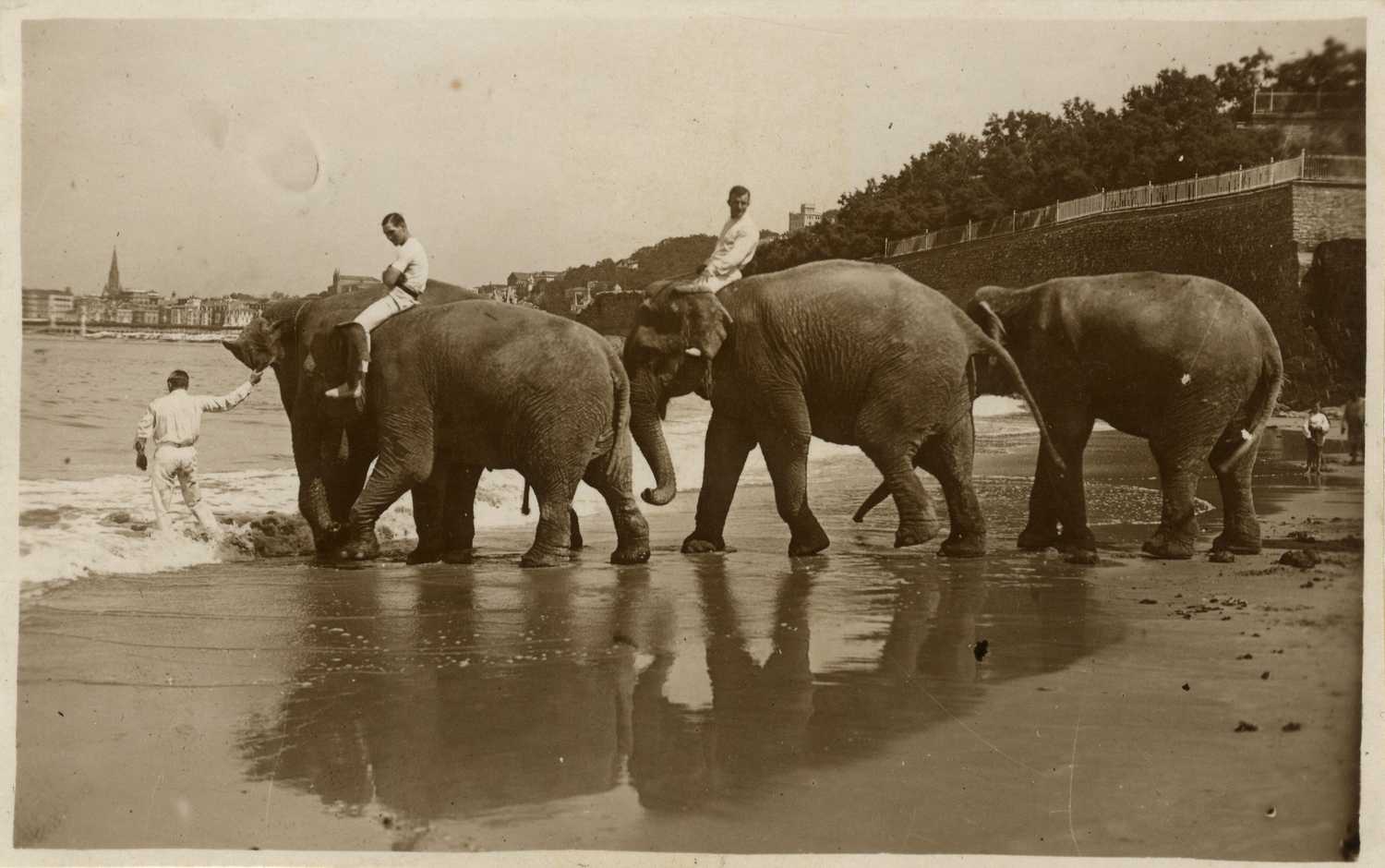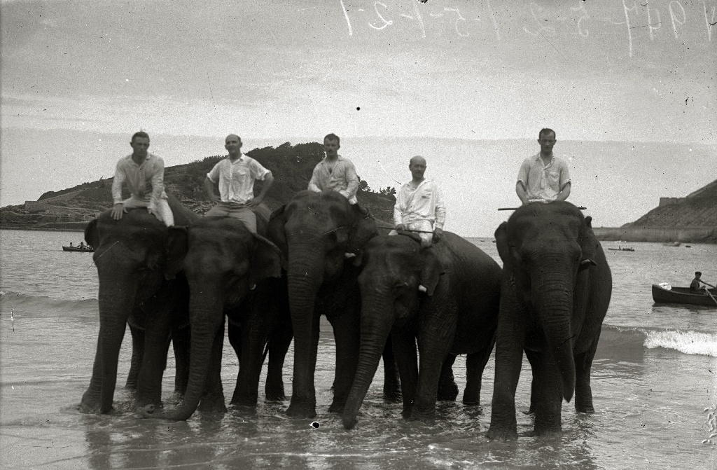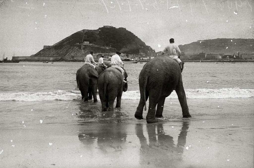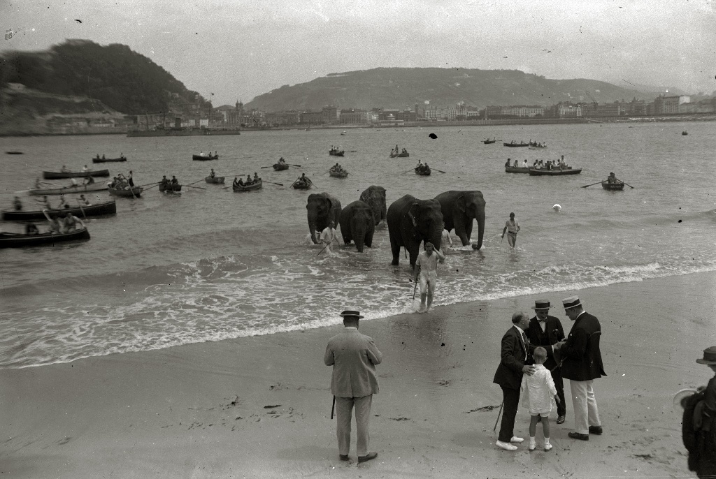 Elefantes del Circo Kroner en la playa de La Concha.